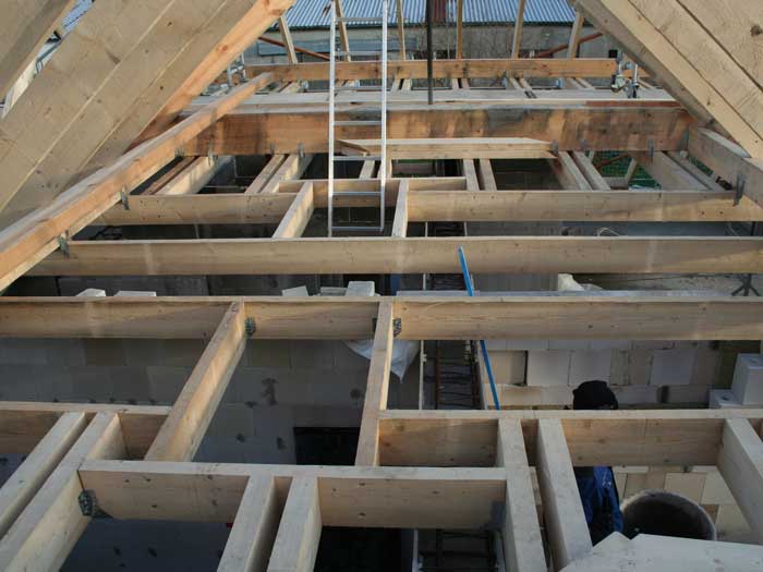 - Errichtung von Deckenscheiben auf der Kehlbalkenebene